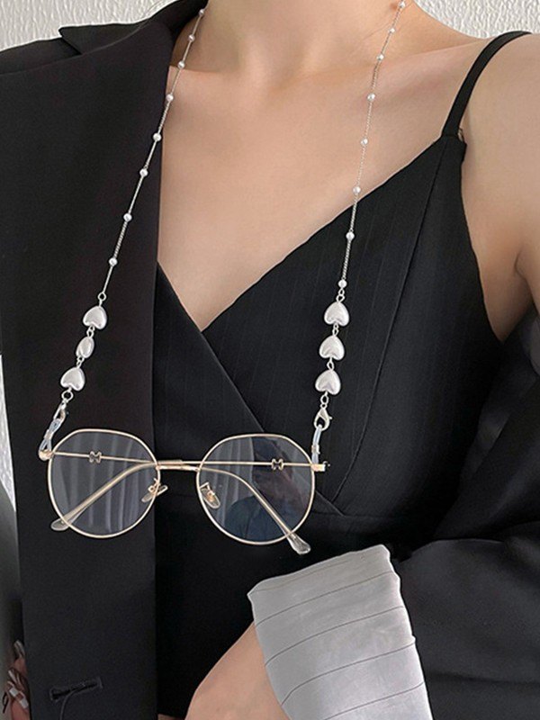 Cadena de anteojos con perla de imitación con patrón de corazón