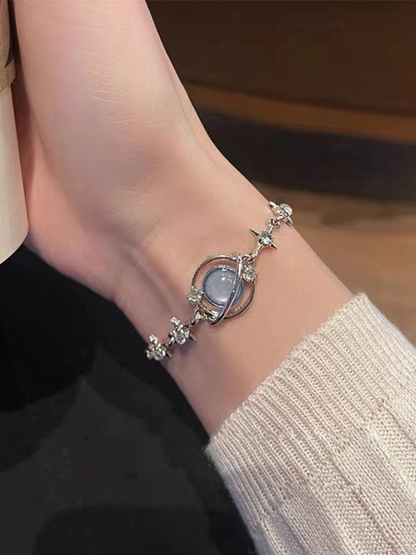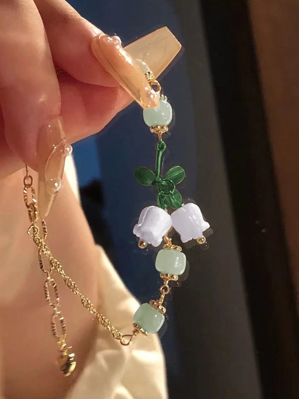 Pulsera de eslabones con colgante de flor de jade sintético ajustable