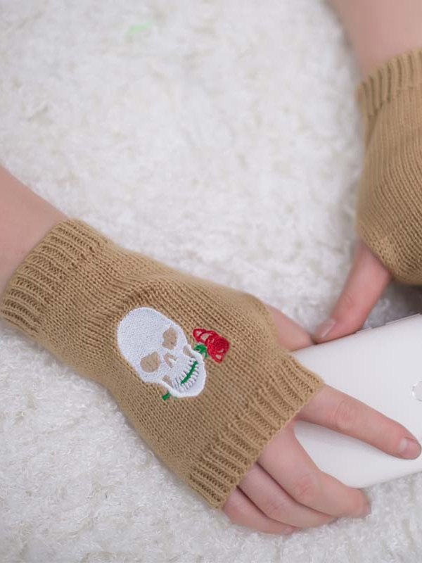 Guantes sin dedos con orificio para el pulgar con bordado de calavera