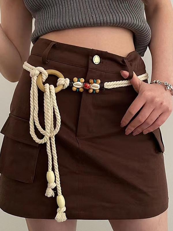 Cinturón de cuerda de cintura con eslabones de anillo de decoración tribal boho