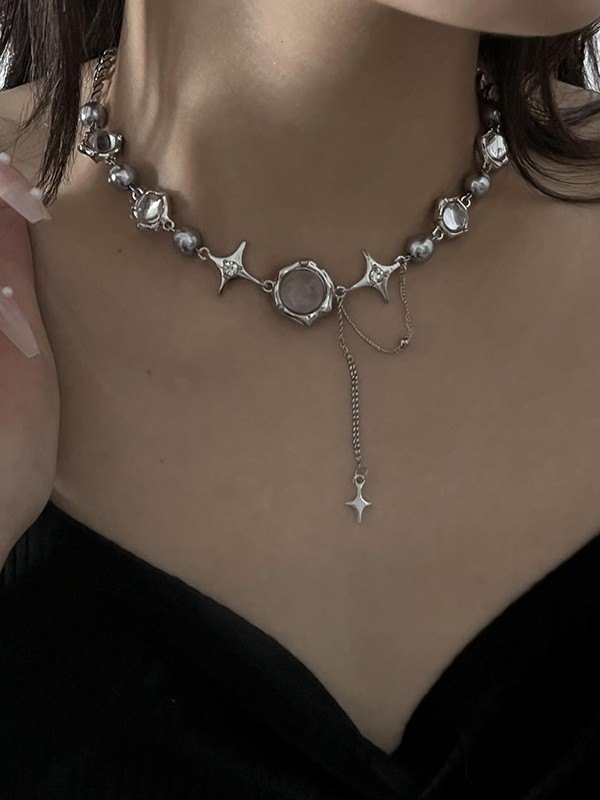 Collar de perlas de imitación con abalorios de estrella