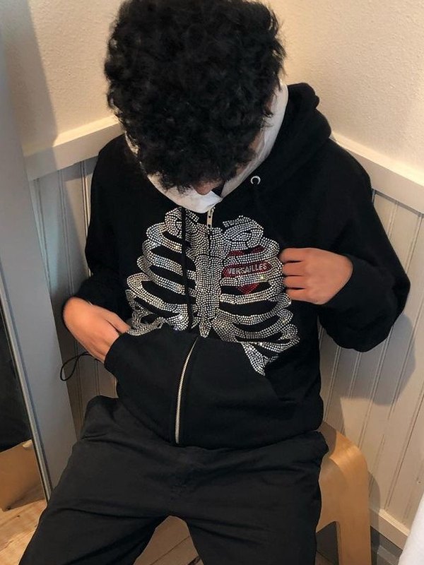 Sudadera con capucha y cremallera de calavera de diamantes de imitación de Halloween para hombre