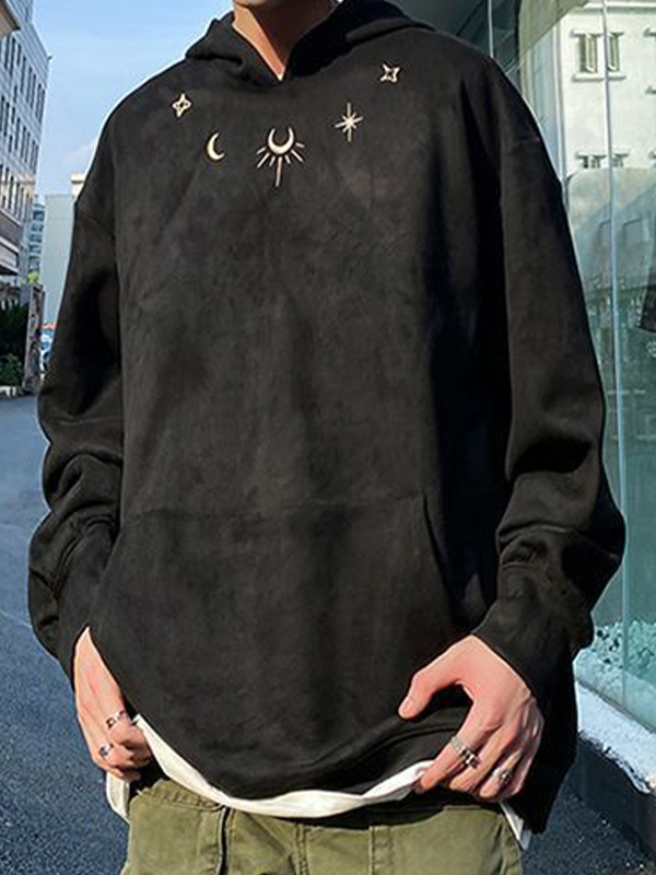 Sudadera con capucha extragrande con bordado de luna y estrella de ante para hombre