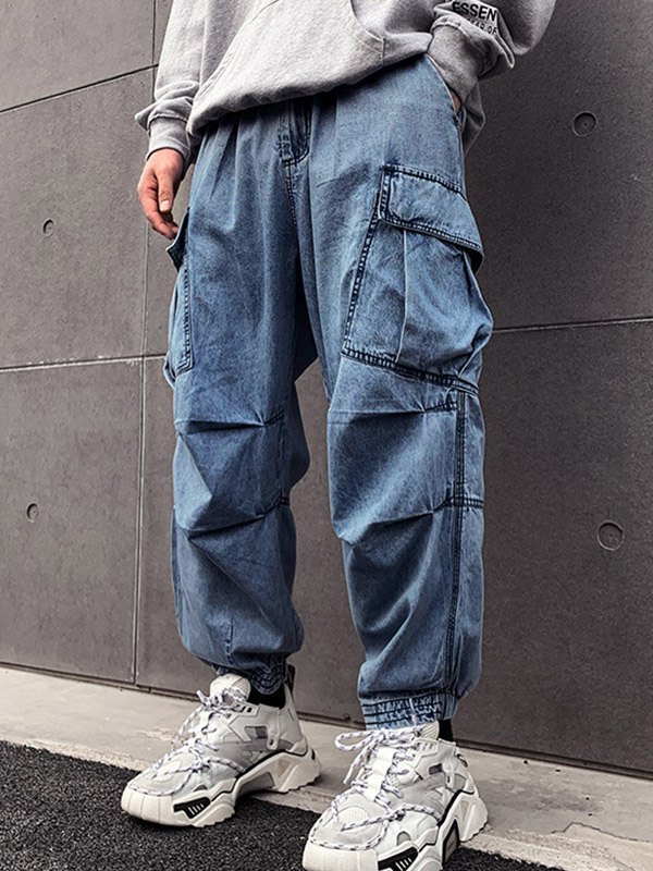 Jeans rectos de mezclilla desgastada con costuras para hombre