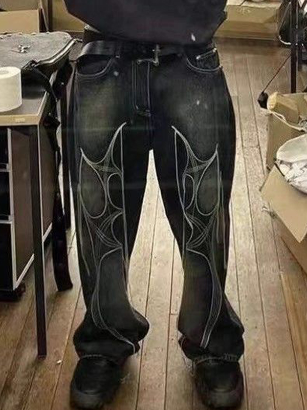 Vaqueros holgados con estampado de grafiti y empalme desgastados de calle para hombre