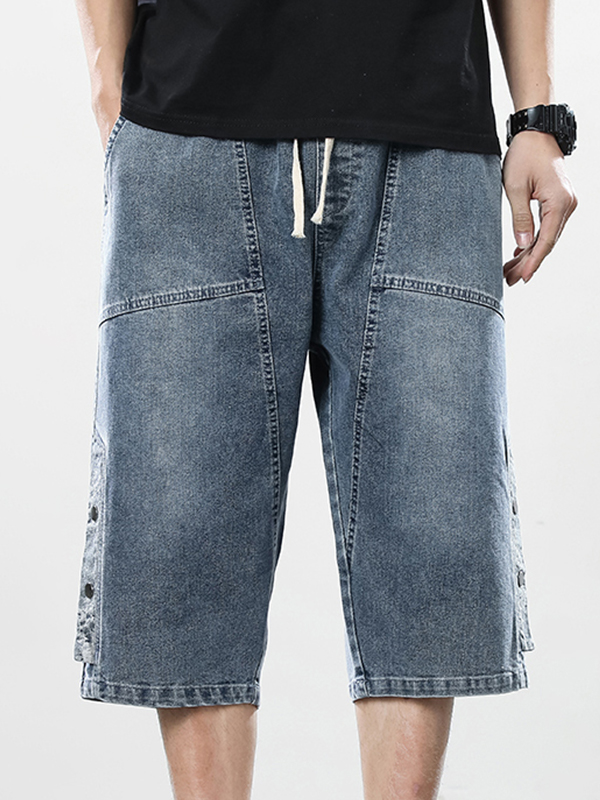 Pantalones cortos de mezclilla desgastados con botones para hombre