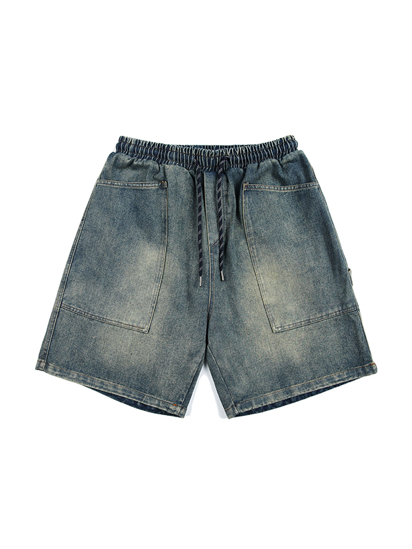 Pantalones cortos de pierna ancha sueltos lavados simples retro para hombre