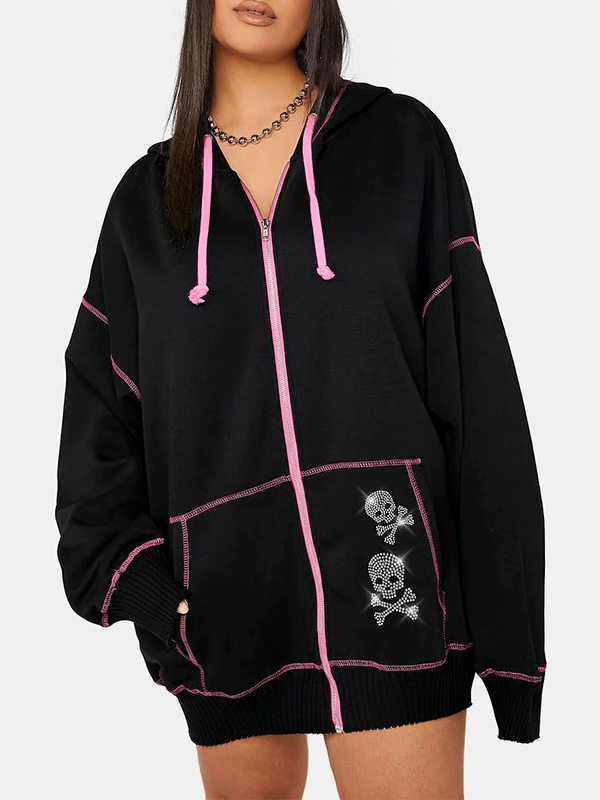 Sudadera con capucha extragrande con estampado de diamantes de imitación y calavera gótica