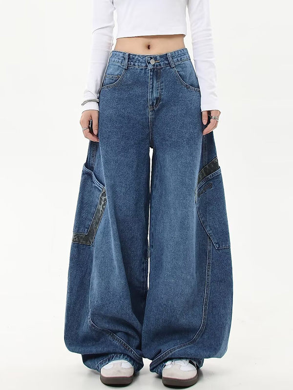 Vaqueros boyfriend con costuras y estampado de leopardo estilo retro americano