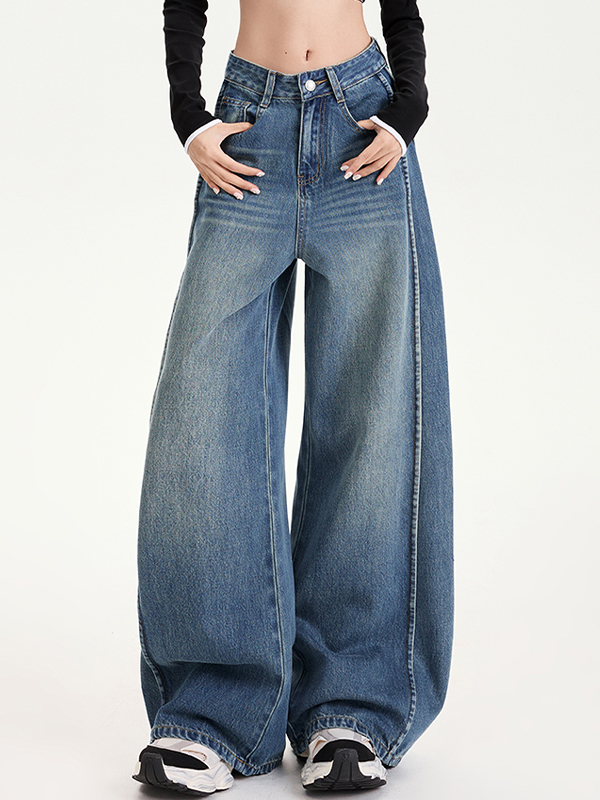 Jeans Banana de tiro alto con pierna ancha y cordón