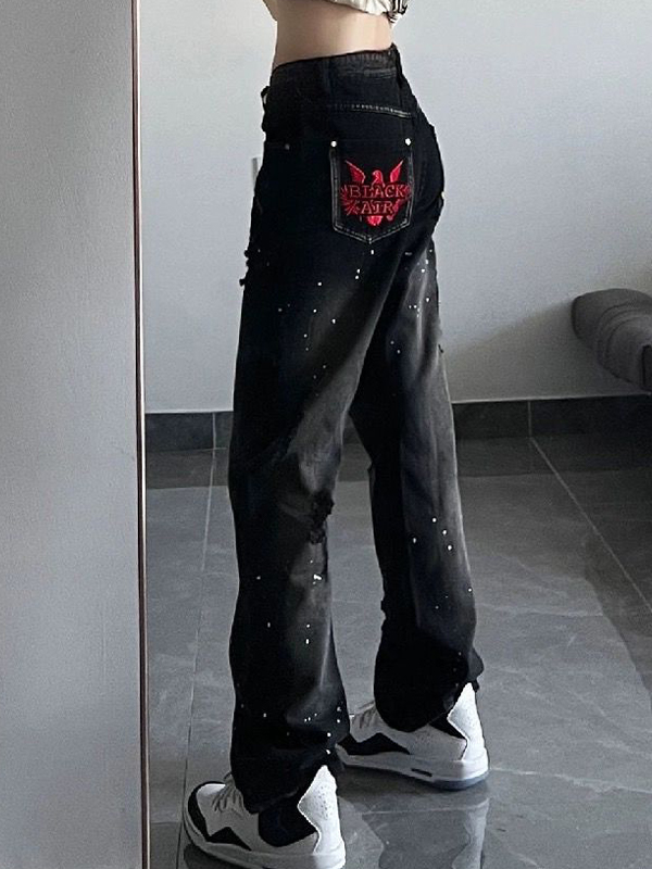 Vaqueros boyfriend con salpicaduras de tinta negra antiguos