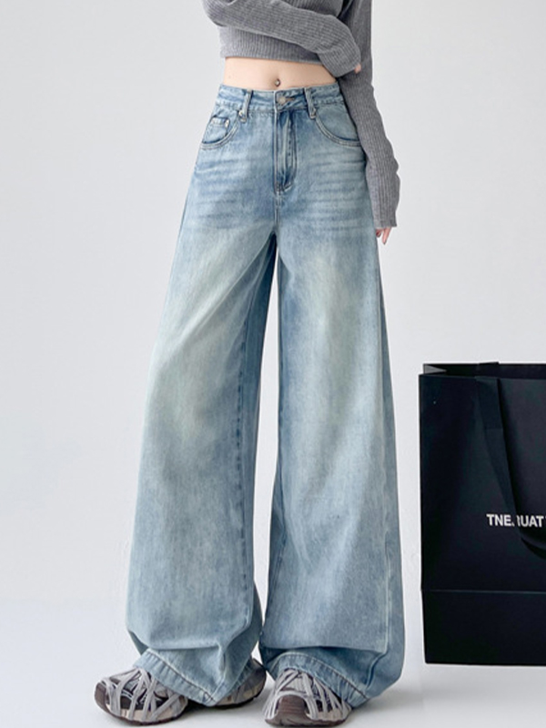 Vaqueros boyfriend holgados de pierna ancha estilo retro americano