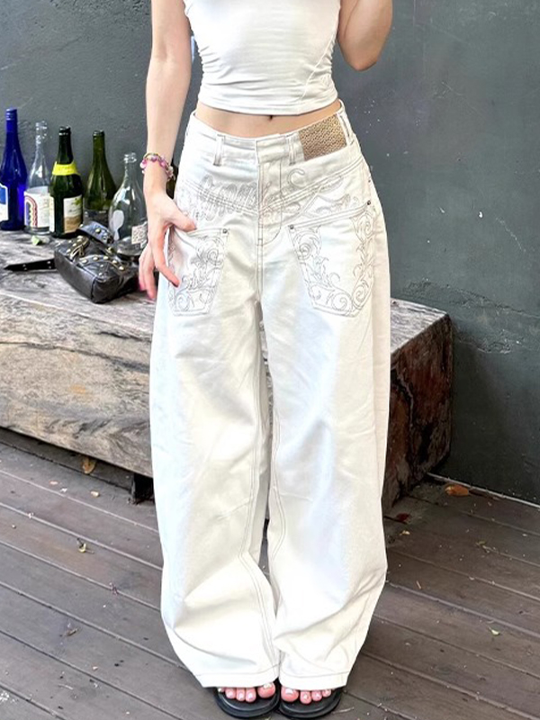 Jeans sueltos de patchwork con bordado de estrellas para hombre