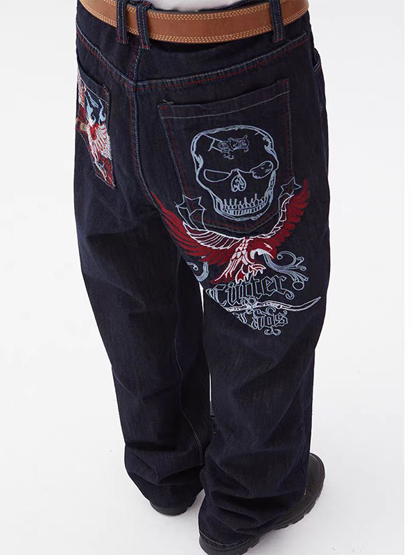 Vaqueros holgados con raglán y emblema de cruz con diamantes de imitación para hombre
