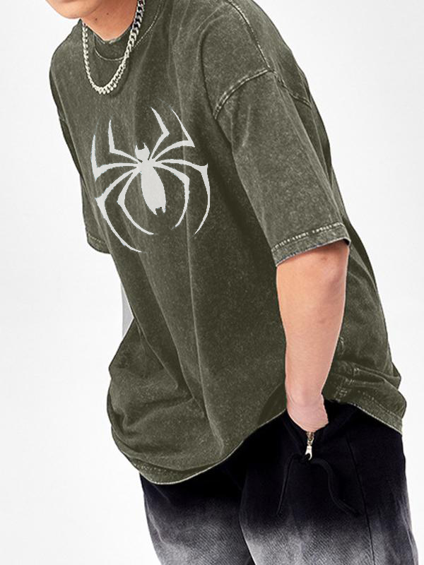 Camiseta extragrande de manga corta con diseño de araña lavada para hombre