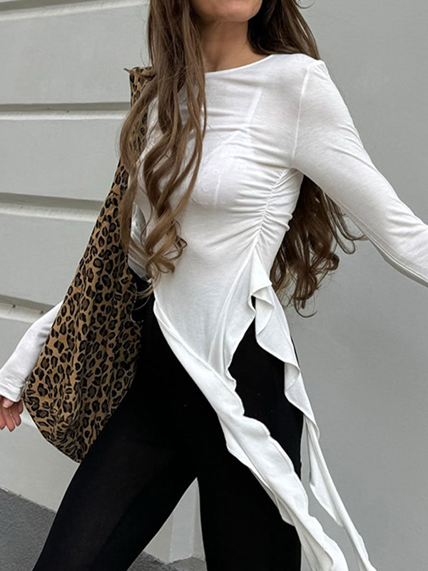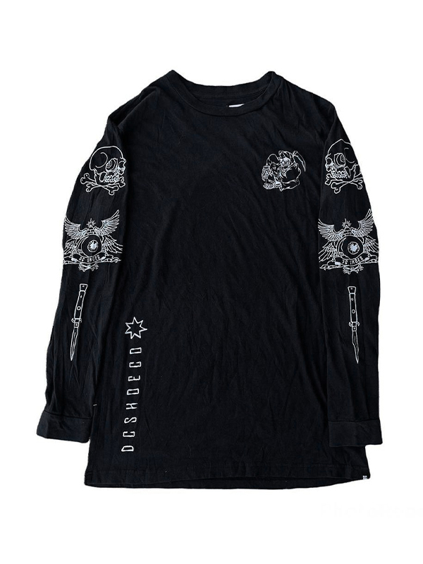 Camiseta de manga larga desgastada lavada de color sólido para hombre
