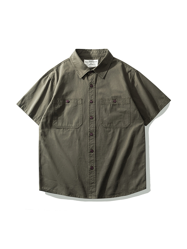 Camisa cargo de manga corta con bolsillo vintage para hombre