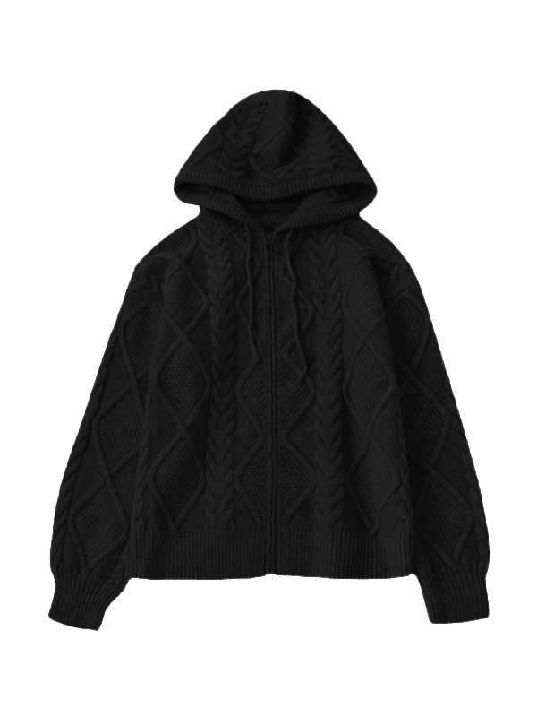 Sudadera con capucha extragrande de punto trenzado liso con cremallera para hombre