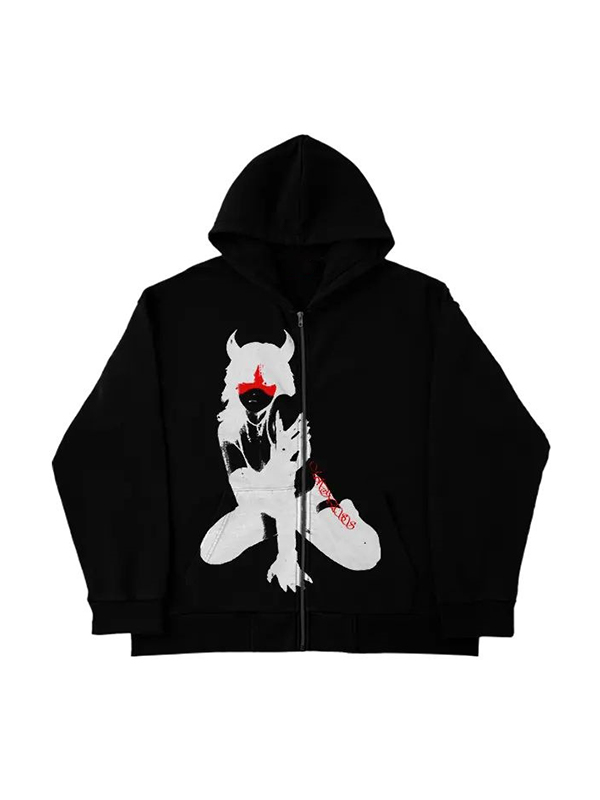 Sudadera con capucha extragrande con cremallera y estampado de personajes para hombre