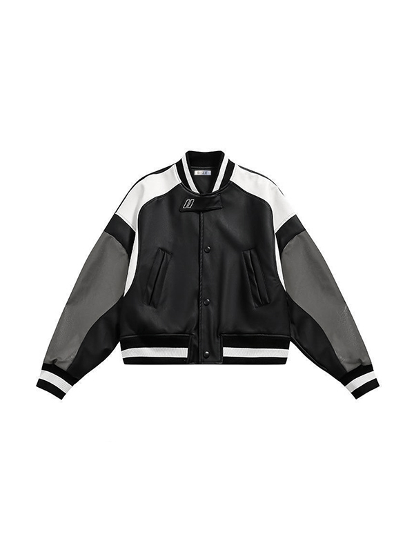 Chaqueta universitaria de cuero con bloques de color vintage para hombre
