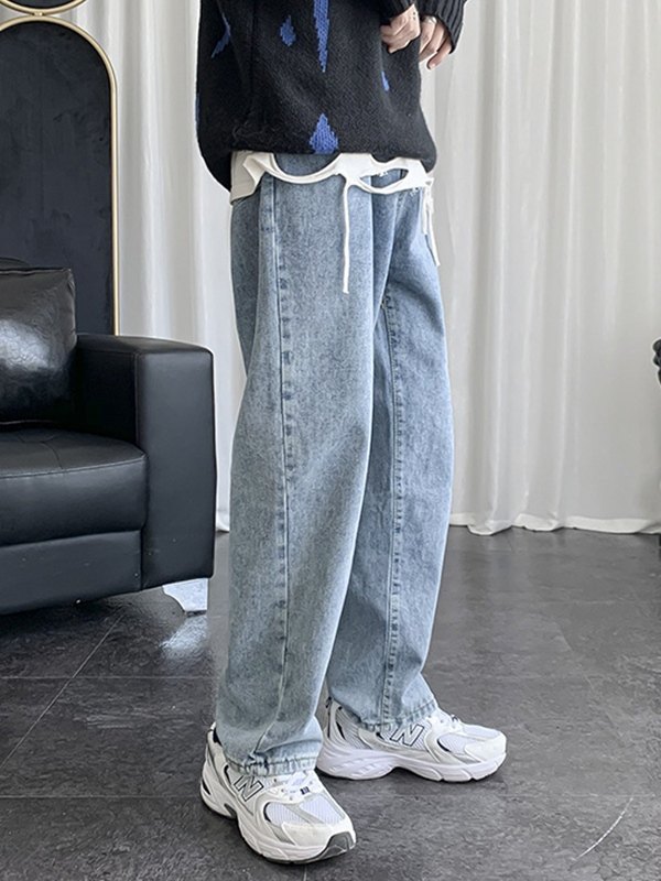 Vaqueros sueltos básicos con lavado azul para hombre