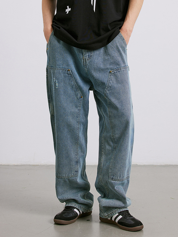 Vaqueros holgados rectos desgastados lavados