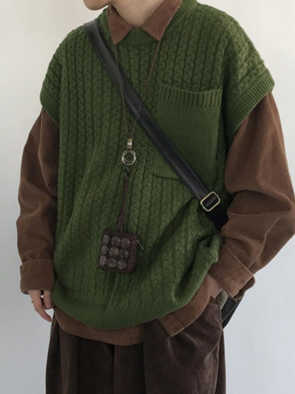 Chaleco tipo jersey tejido con bolsillo delantero para hombre