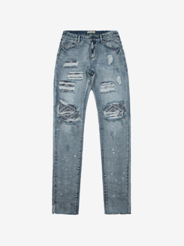 Vaqueros holgados con estampado de grafiti y empalme desgastados de calle para hombre
