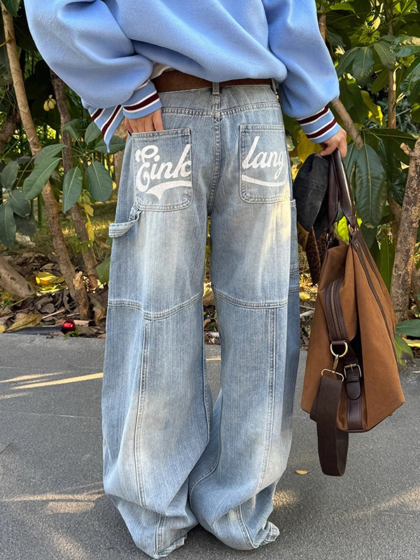 Jeans cargo sueltos de mezclilla con lavado vintage para hombre
