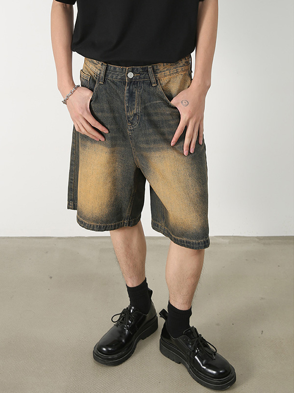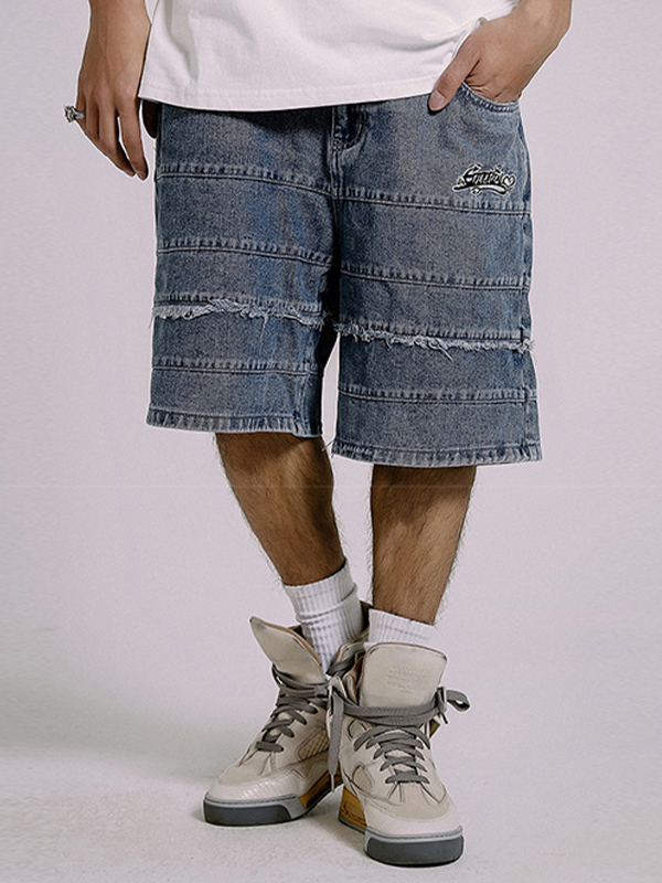 Pantalones cortos sueltos simples desgastados lavados para hombre