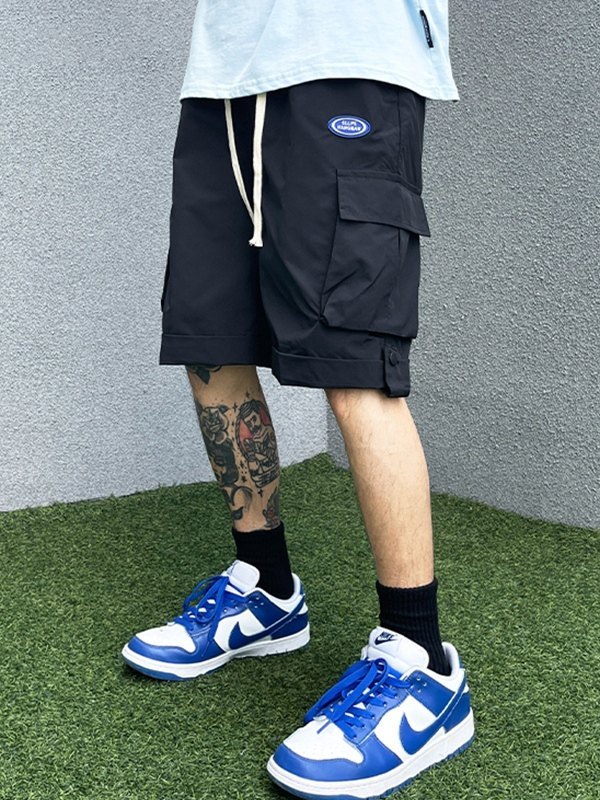 Pantalones cortos con letras bordadas informales, rectos y sueltos para hombre