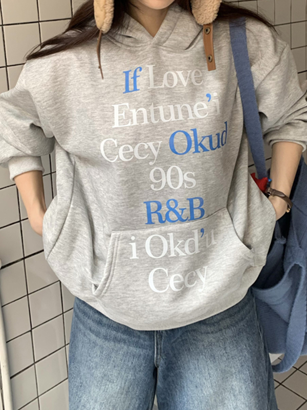 Sudadera con capucha de manga larga y letras de gran tamaño