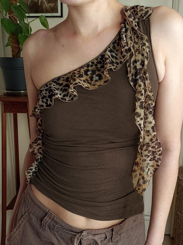 Chaleco con estampado de leopardo y camiseta sin mangas festoneada