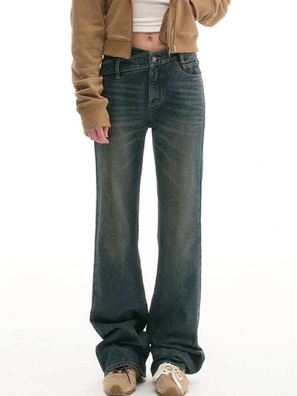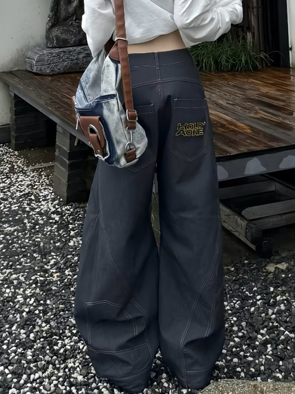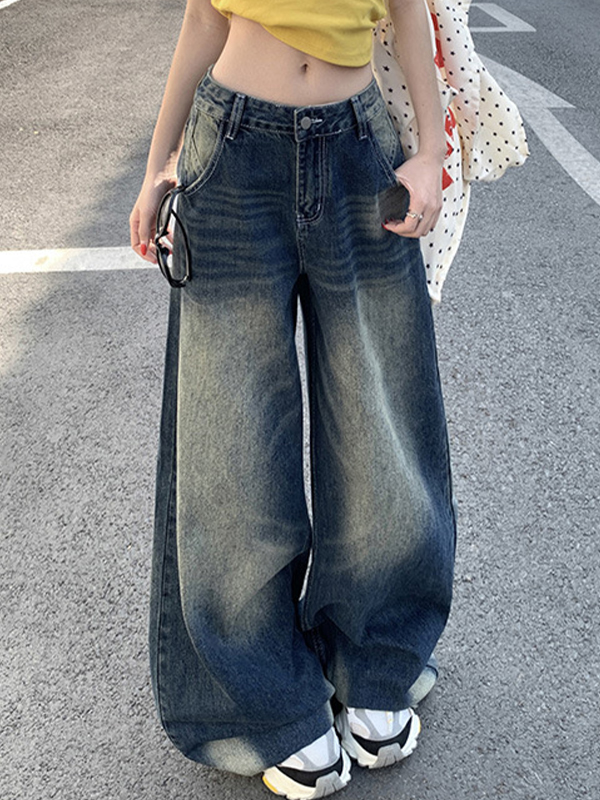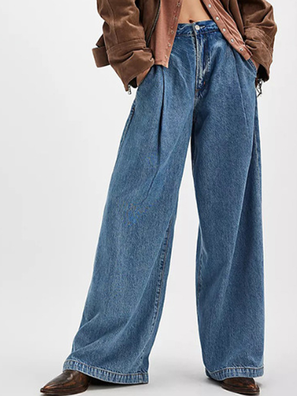 Vaqueros boyfriend holgados de pierna ancha estilo retro americano