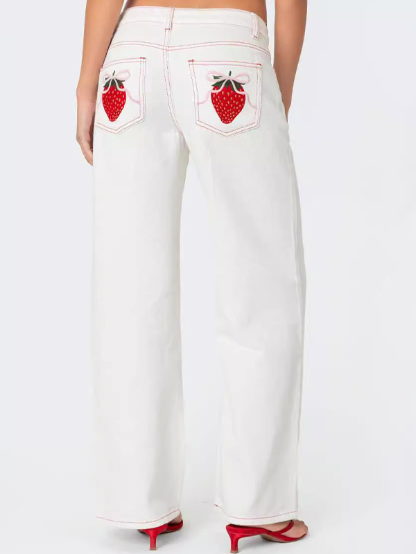 Pegatinas bonitas con forma de lazo y fresa para vaqueros boyfriend