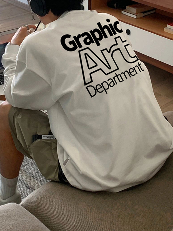 Camiseta de manga larga con cuello redondo y estampado de letras para hombre