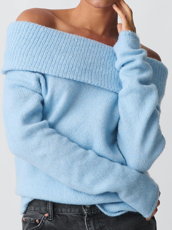 Suéteres oversize con hombros descubiertos y colores sólidos