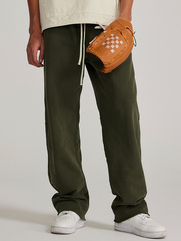 Pantalones de pierna recta con cordón de color sólido para hombre