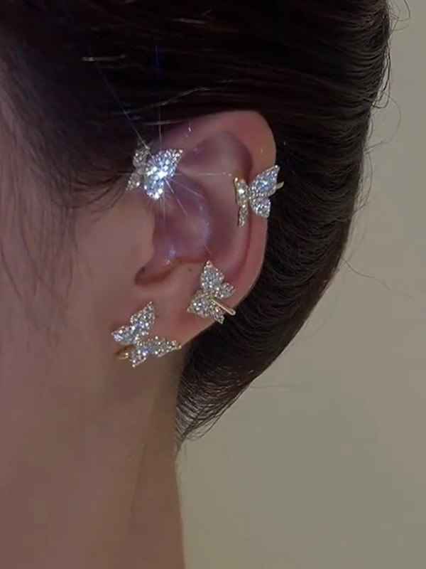 1 par de puños de oreja de mariposa de diamantes de imitación