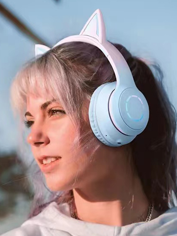 Auricular Bluetooth con oreja de gato y degradado luminoso con micrófono