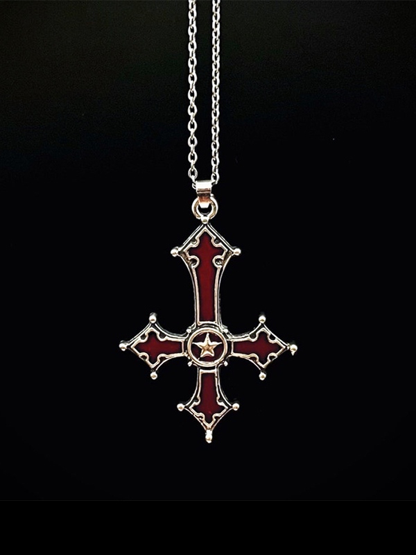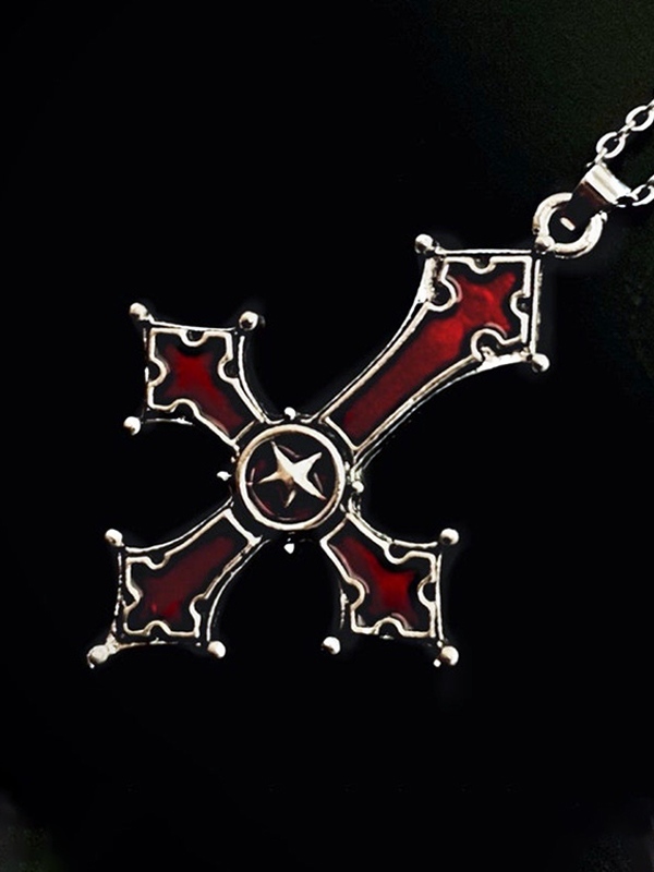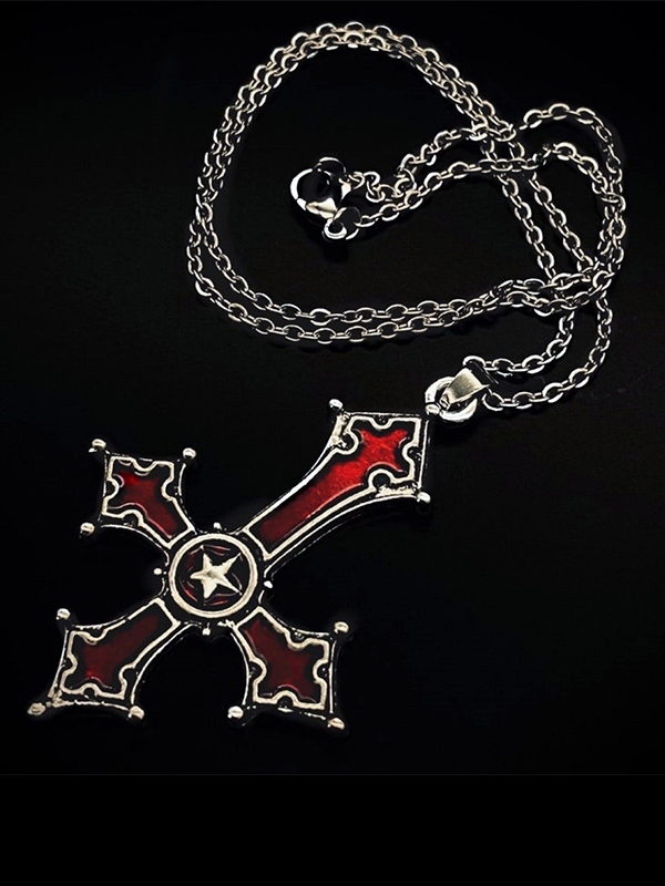 Sé el primero en valorar “Collar con colgante de cruz invertida rojo sangre”