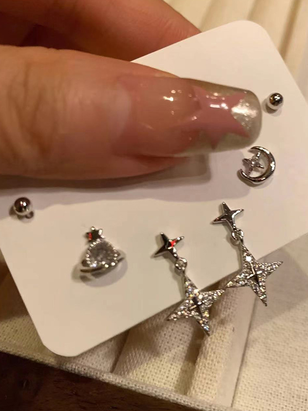 6 piezas arete con forma de estrella y luna Saturno