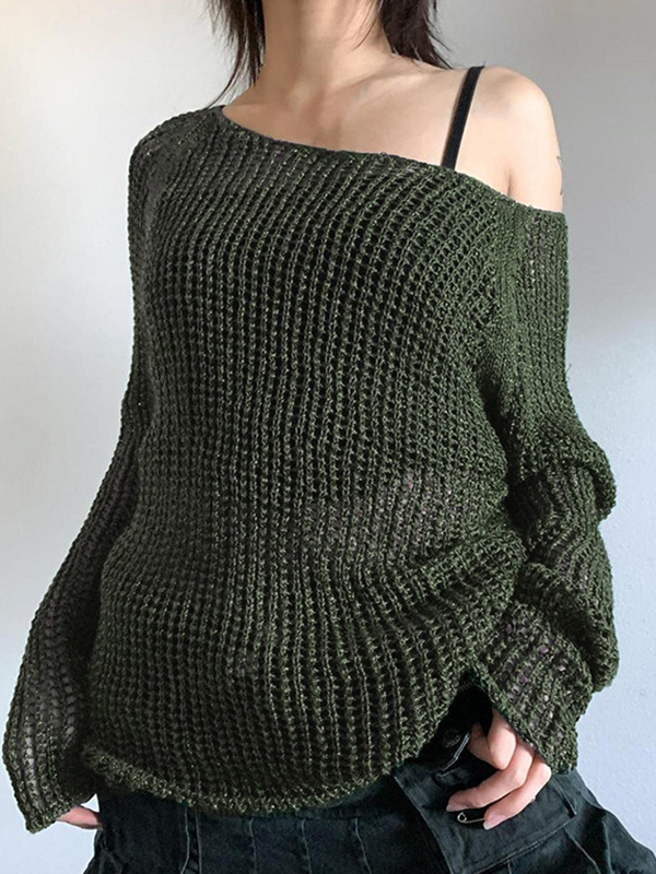 Sé el primero en valorar “Suéter de punto calado con hombros descubiertos y manga larga”